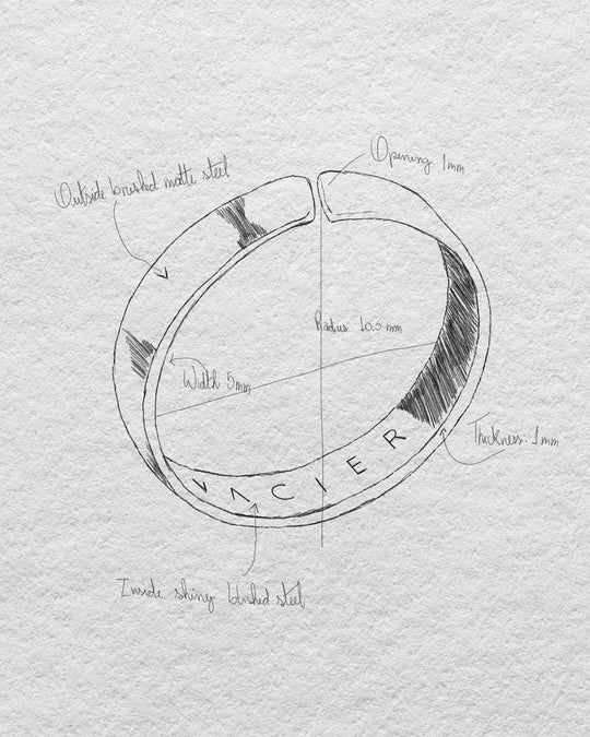 1 // The challenge of finding the right fit. The sizing of traditional jewelry often relies on precise measurements, making it difficult to get the perfect fit. Our approach to this is versatile and functional jewelry. All of Vacier’s collections are adjustable or unisize, meaning they can be customized to fit anyone.